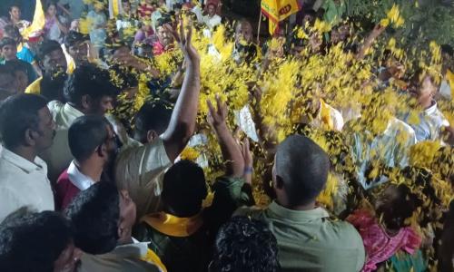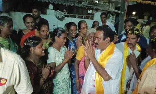Amaravathi Jyothi - Andhra Pradesh / SPSNellore : కావ్యకు ఎదురేగి ఆత్మీయ స్వాగతం పలికిన ఆముదాలదిన్నె ప్రజలు కావలి,అమరావతి జ్యోతి: పూలవర్షం నడుమ గ్రామ వీధుల్లో భారీ ర్యాలీ, మా నేత కావ్య, మా కాబోయే ఎమ్మెల్యే కావ్య అంటూ నినదించిన గ్రామం. ఎమ్మెల్యేగా తిరిగి గ్రామానికి రావాలంటూ రామాలయంలో పూజాదికాలు నిర్వహించిన గ్రామస్థులు, ఆశీర్వదించిన వేద పండితులు. అనంతరం గ్రామస్థులతో కలిసి చలివేంద్రాన్ని, పార్టీ కార్యాలయాన్ని ప్రారంభించిన కావ్య కృష్ణారెడ్డి. గ్రామంలో రోడ్లు, తాగునీరు, సాగు నీరు సమస్యలను ఏకరువు పెడుతూ పరిష్కరించాలని తాము అండగా నిలబడి గెలిపించుకుంటామని నినదించిన ఆముదాలదిన్నె వాసులు. ఈ సందర్భంగా కావ్య క్రిష్ణారెడ్డి మాట్లాడుతూ ఉత్సాహం, ఆనందం చూస్తుంటే గెలిచిన ఆనందం కలుగుతుందన్నారు. రూరల్ మండలంలో మొదటిగా వచ్చిన గ్రామం ఆముదాలదిన్నె అని తెలిపారు. గ్రామానికి విచ్చేస్తే మీరు చూపిన ఆప్యాయత, అనురాగం ఎప్పటికీ మరచిపోలేనని తెలిపారు. మీ స్మశానాన్ని కూడా ఆక్రమించిన వ్యక్తి మన ఎమ్మెల్యే అని విమర్శించారు. తుమ్మల పెంట రోడ్డుకు 5 సంవత్సరాల క్రితం శంకుస్థాపన చేస్తే రోడ్డు వేయలేని ఎమ్మెల్యే మనకు అవసరమా? అని ప్రశ్నించారు. గ్రామంలో సిసి రోడ్లు లేవు, డ్రైనేజీ లు లేక రోడ్డు పై మురుగు పారుతుందన్నారు. ప్రాంతాన్ని అభివృద్ధి చేయకుండా స్వాహా చేయడమే ధ్యేయంగా ఎమ్మెల్యే ఉన్నారని విమర్శించారు.. చంద్రబాబు గారు అధికారంలోకి వస్తే ఉన్న పధకాలే కాకుండా బాబు ష్యూరిటీ - భవిష్యత్తుకు గ్యారెంటీ పధకం ద్వారా మరిన్ని పధకాలు కూడా ఇవ్వనున్నారని తెలిపారు. సూపర్ సిక్స్ పధకాలను ఈ సందర్భంగా వివరించారు. ఎన్నో సంక్షేమ పధకాలు ప్రవేశపెట్టిన ఘనత చంద్రబాబు గారిది అని అన్నారు. రైతులకు సాగునీరు అందించలేని దుస్థితి లో మన పాలకులు ఉన్నారన్నారు. ఎమ్మెల్యేగా గెలిచిన వెంటనే సొంత డబ్బులు పెట్టి అయినా సరే తుమ్మలపెంట రోడ్డును పూర్తి చేస్తాను అని ప్రజలకు హామీ ఇచ్చారు.. గ్రామం నుండి 400 ఓట్ల మెజారిటీ ఇచ్చి ఆశీర్వదించాలని కోరారు.. ఈ కార్యక్రమంలో కావలి రూరల్ మండలం అధ్యక్షుడు ఆవుల రామకృష్ణ, రూరల్ మండల ప్రధాన కార్యదర్శి ఉప్పాల వెంకట్రావు, మండల కో-ఆర్డినేటర్ కండ్లగుంట మధుబాబు నాయుడు, జనసేన కావలి పట్టణ అధ్యక్షులు పొబ్బా సాయి విఠల్, గ్రామ కమిటీ అధ్యక్షులుఉప్పాల నారాయణ, మాజీ సర్పంచ్ ఉప్పాల మాలకొండయ్య, మాజీ సర్పంచ్ అరగల రాములు, గ్రామ కమిటీ ఉపాధ్యక్షులు జంపాని శ్రీను, షేక్ అహ్మద్, షేక్ రఫీ, ఉప్పాల దినేష్, కొమర ప్రసాద్, కోసూరి వెంకటేశ్వర్లు, టీడీపీ-జనసేన నాయకులు, కార్యకర్తలు పాల్గొన్నారు..