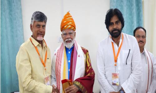 Amaravathi Jyothi - National / అమరావతి : వారణాసి: తెలుగుదేశం పార్టీ అధినేత నారా చంద్రబాబు నాయుడు, జనసేన అధినేత పవన్ కళ్యాణ్ లు వారణాసిలో ప్రధాని నరేంద్ర మోదీ నామినేషన్ కార్యక్రమంలో పాల్గొన్నారు. అమరావతి జ్యోతి: భిన్న వాతావరణ పరిస్థితులను ఎదుర్కొంటున్న తెలుగు రాష్ట్రాల ప్రజలకు ఐఎండీ శుభవార్త చెప్పింది. మరో 4 రోజుల్లో నైరుతి రుతుపవనాలు అండమాన్ తీరాన్ని తాకుతాయని తెలిపింది. మరోవైపు ద్రోణి ప్రభావంతో నాలుగు రోజుల్లో ఏపీలో కొన్ని చోట్ల పిడుగులతో కూడిన వర్షాలు కురుస్తాయని పేర్కొంది. ఇవాళ ఉమ్మడి తూ.గో., ప.గో., కృష్ణా జిల్లాల్లో పిడుగులతో కూడిన మోస్తరు వర్షాలు కురిసే అవకాశముందని వెల్లడించింది.