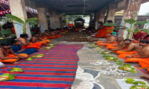 Amaravathi Jyothi - Andhra Pradesh / SPSNellore : వైభవంగా హనుమత్ వ్రతం కందుకూరు: స్థానిక జనార్ధన స్వామి ఆలయంలో హనుమద్ దీక్షా పరులు అత్యంత వైభవంగా హనుమత్ వ్రతం నిర్వహించారు. శుక్రవారం ఉదయం నుంచి ఆలయ ఆవరణ భక్తులతో కోలాహలంగా ఉంది. ముందుగా వాలాగ్రా ఆంజనేయస్వామి పూజ పూర్తి చేసుకుని అనంతరం హనుమత్ వ్రతంలో పాల్గొన్నారు. సువర్చల ఆంజనేయ స్వాములను శ్రీరామనామం చేస్తూ వ్రతస్థలికి తీసుకుని వచ్చారు. వేద పండితులు కిషోర్, కళ్యాణ్ చక్రవర్తి ఇరువురు ఘనంగా వ్రతం నిర్వహించారు. అనంతరం వ్రత హోమం నిర్వహించి భక్తులతో మంత్ర జపం చేపించారు. దీక్షాపరులకు వ్రతానికి వచ్చిన భక్తులకు అన్న ప్రసాద వితరణ కార్యక్రమం నిర్వహించారు. శ్రీరామ శరణ్ హనుమత్ సేవా సంఘం ఆధ్వర్యంలో జరిగిన ఈ కార్యక్రమంలో హనుమత్ ప్రసాద్ గురువుగారు, గురుస్వామి నాగినేని కోటేశ్వరరావు, చిమ్మిడదపాడు హనుమాన్ ట్రస్ట్ అధ్యక్షుడు ఏవి హనుమంతరావు, ఈ సామూహిక వ్రతంలో హనుమదీక్షాపరులతో పాటు హనుమత్ భక్తులు, మహిళలు అధిక సంఖ్యలో పాల్గొన్నారు. చెన్నుపాడు, టంగుటూరు, ఎనికపాడు, గుడ్లూరు, చిమిడిదపాడుకు సంబంధించిన దీక్ష పరులు భక్తులు పాల్గొన్నారు.