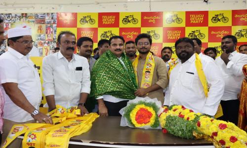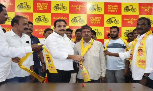 Amaravathi Jyothi - Andhra Pradesh / SPSNellore : కందుకూరు: కందుకూరు నియోజకవర్గ తెలుగుదేశం పార్టీ కార్యాలయంలో పట్టణంలో 5వ వార్డుకు చెందిన వై.ఎస్.ఆర్. కాంగ్రెస్ పార్టీ నాయకులు చనమాల శ్రీధర్, 18 వ వార్డుకు చెందిన సయ్యద్ మూస ఆధ్వర్యంలో 33 కుటుంబాల వారు వైసీపీ పార్టీకి రాజీనామా చేసి కందుకూరు శాసనసభ్యులు ఇంటూరి నాగేశ్వరరావు ఆధ్వర్యంలో తెలుగుదేశం పార్టీలో చేరారు..ఈ సందర్భంగా ఎమ్మెల్యే మాట్లాడుతూ తెలుగుదేశం పార్టీలో నా గెలుపు కోసం కృషి చేసిన నాయకులను, కార్యకర్తలను ఎప్పటికీ మర్చిపోనని ఎమ్మెల్యే తెలియజేశారు..ప్రజా సమస్యల పరిష్కారం కోసం పాత మరియు కొత్త నాయకులందరం కలిసి పనిచేద్దామని ఎమ్మెల్యే తెలిపారు..24 x 7 ఎప్పుడు ప్రజలకు అందుబాటులో ఉంటూ కందుకూరు నియోజకవర్గం అభివృద్ధి కోసం శాయశక్తుల కృషి చేస్తానని ఎమ్మెల్యే ఇంటూరి నాగేశ్వరరావు తెలియజేశారు..అనంతరం సయ్యద్ మూస ఆధ్వర్యంలో గజమాలతో ఎమ్మెల్యేని సత్కరించారు..ఈ సందర్భంగా పార్టీలో చేరిన నేతలు మాట్లాడుతూ ఎమ్మెల్యే ఇంటూరి నాగేశ్వరరావు గెలిచినప్పటినుంచి ప్రజలకు నిత్యం అందుబాటులో ఉంటూ, ప్రజా సమస్యల పరిష్కారానికి కృషి చేస్తున్నారని నిత్యం నియోజకవర్గ అభివృద్ధి కోసం పనిచేసే ఇంటూరి నాగేశ్వరరావు గారి నాయకత్వంలో పనిచేయటానికి తామంతా వైసిపి పార్టీ రాజీనామా చేసి తెలుగుదేశం పార్టీలో చేరామని వారు తెలిపారు..ఈ కార్యక్రమంలో పట్టణ పార్టీ అధ్యక్షుడు దామా మల్లేశ్వరరావు, రాష్ట్ర ఎస్సీ సెల్ కార్య నిర్వాహక కార్యదర్శి చదలవాడ కొండయ్య, రాష్ట్ర ముస్లిం మైనార్టీ అధికార ప్రతిదీ షేక్ రఫీ, పట్టణ ఎస్సీ సెల్ అధ్యక్షుడు పులి నాగరాజు, పార్టీ నాయకులు పొడపాటి నరసింహం, శ్యామ్, నూకతోటి క్రాంతి మరియు ఇతర నాయకులు పాల్గొన్నారు..