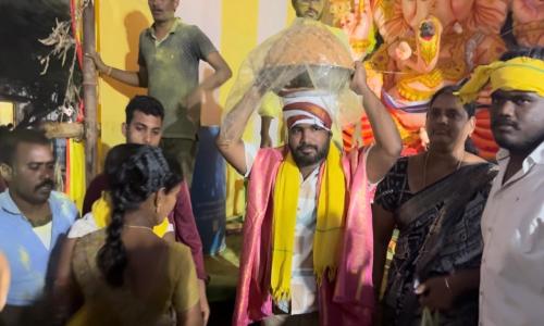 Amaravathi Jyothi - Andhra Pradesh / SPSNellore : కమ్మపాలెం రామాలయం వద్ద గణేష్ లడ్డు 2,00,001/రూపాయలకు పాడిన వలేటి మాలకొండయ్య కుటుంబ సభ్యులు గుడ్లూరు చరిత్రలో రికార్డ్ గుడ్లూరు: మండల కేంద్రం గుడ్లూరులో కమ్మపాలెం వద్ద ఉన్న శ్రీ రామాలయం వద్ద ఏర్పాటుచేసిన గణేష్ మండపంలో లడ్డు పాటను 2 లక్షల ఒక రూపాయలకు వలేటి మాలకొండయ్య కుటుంబ సభ్యులు శనివారం సాయంత్రం పాడారు. ఆధ్యాత్మిక కార్యక్రమాలలో మాలకొండయ్యకు తనకంటూ ఒక ప్రత్యేకత ఉంది. స్థానికంగా ఉన్న పలు ఆలయాలకు విరాళాలు అందించడంతోపాటు ఎంతోమందికి సహాయ సహకారాలు అందిస్తూ ఉంటారు. చెమడిదపాడు వద్ద నిర్మాణంలో ఉన్న శ్రీ పంచముఖ ఆంజనేయ స్వామి వారి ఆలయ నిర్మాణానికి కూడా మాలకొండయ్య విరాళం అందించారు. రామాలయం వద్ద గణేష్ మండపంలో శనివారం సాయంత్రం జరిగిన లడ్డు వేలం పాటలో మాలకొండయ్య కుటుంబ సభ్యులు పాల్గొన్నారు. ఈ పాటలో అధిక మొత్తానికి పాడి గణేష్ ప్రసాదం లడ్డూను 2లక్షల ఒక రూపాయలకు దక్కించుకున్నారు. ఈ కార్యక్రమంలో మాలకొండయ్య - సుప్రజ దంపతులు, అక్షయ, సన్నీ, మహేష్, నవీన్ కుటుంబ సభ్యులు, స్థానికులు, తదితరులు పాల్గొన్నారు.